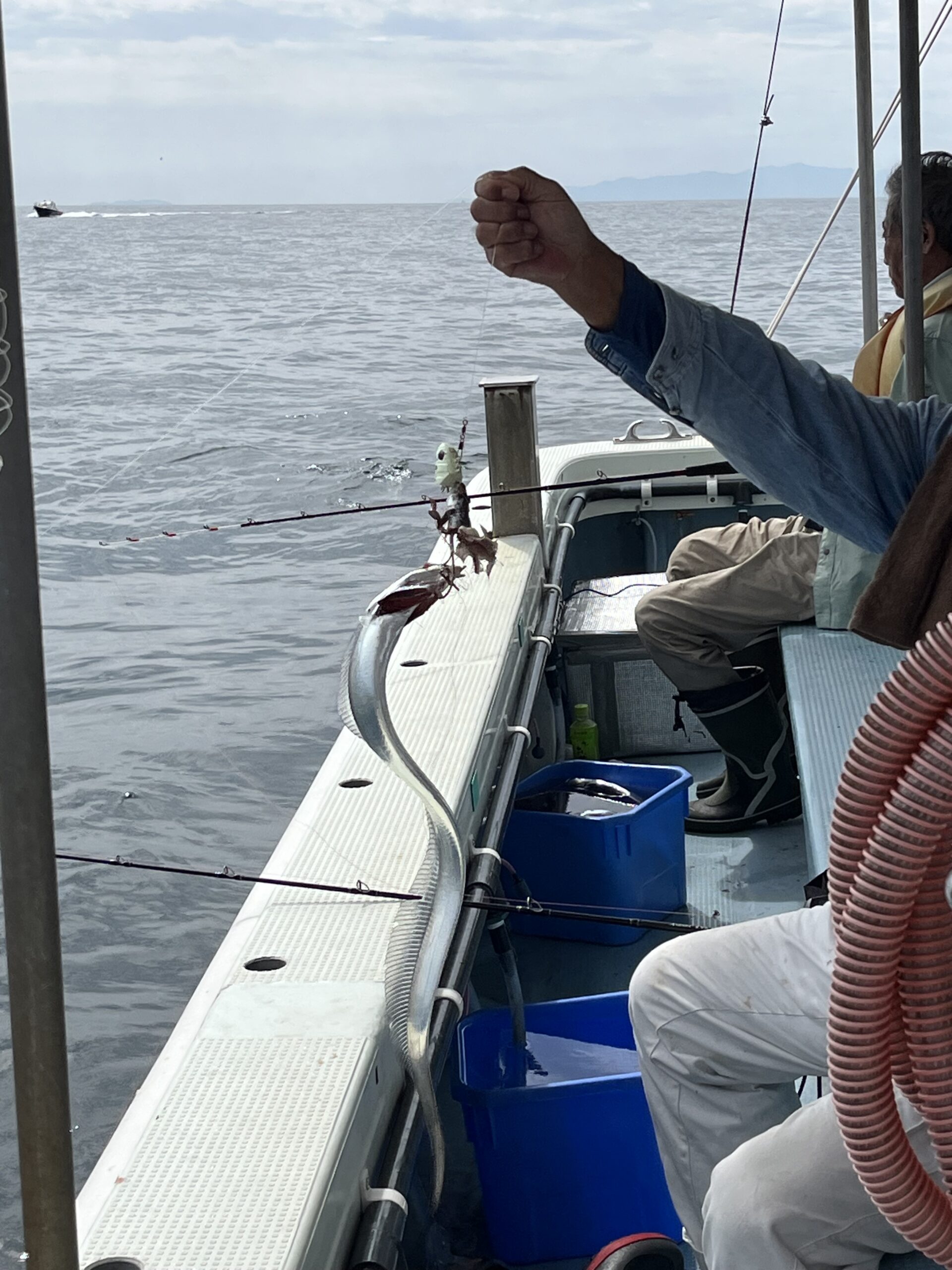 三村さん!タチウオ釣り上げましたー! 釣場 神戸沖 天気 曇り 海上の状況 波あり・風あり 魚 タチウオ 65〜90㎝ 15匹 餌 冷イワシ 釣頭 姫路市 本日は乗船して頂き有難うございました! FacebookXBlueskyHatenaCopy